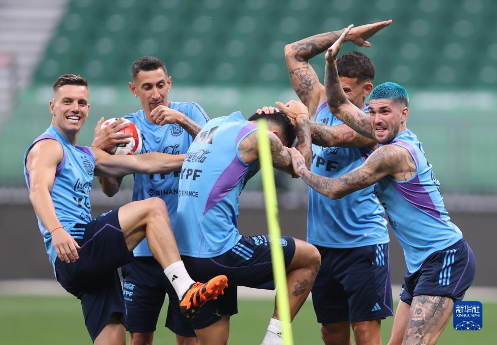 6月14日,阿根廷隊球員在訓練中。新華社記者 賈浩成 攝