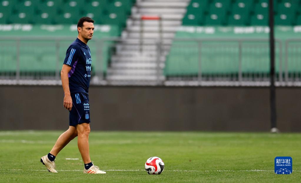 6月14日,阿根廷隊主教練斯卡洛尼在訓練中。新華社記者 賈浩成 攝