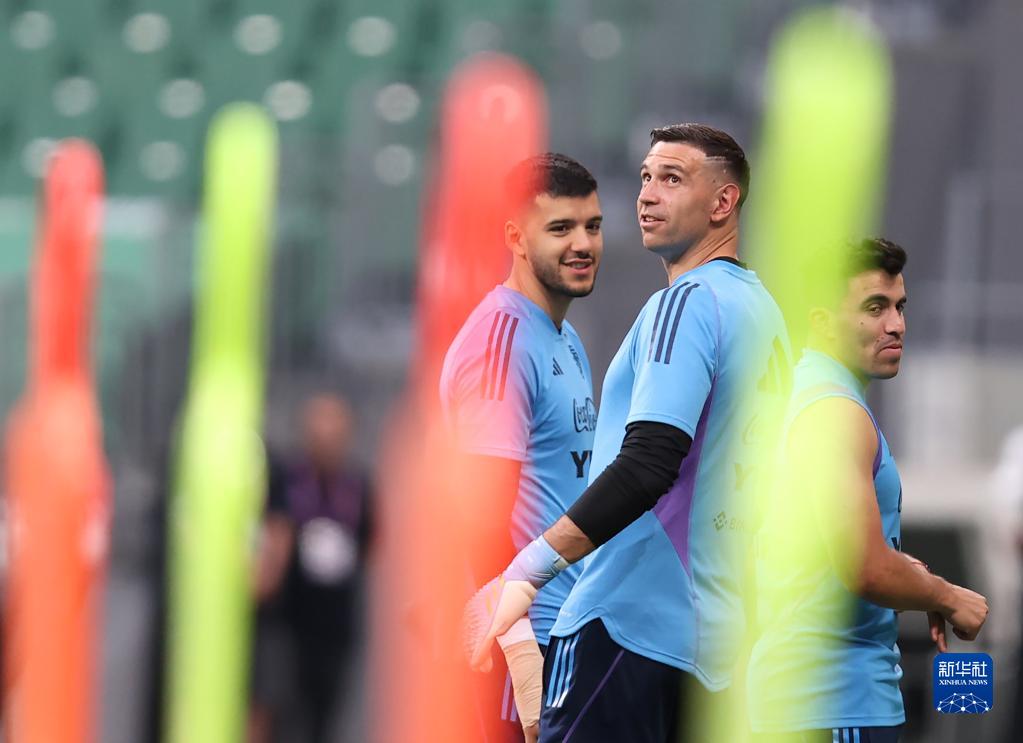 6月14日,阿根廷隊守門員馬丁內斯(中)在訓練中。新華社記者 賈浩成 攝