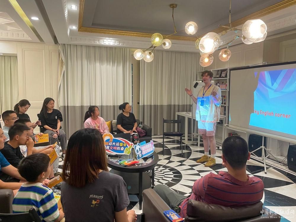 7月13日,丁小?。ㄓ叶┰诔啥纪╄髁謬H社區(qū)鄰里中心書院的英文課堂上。新華社發(fā)(桐梓林國際社區(qū)供圖)