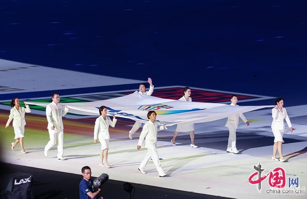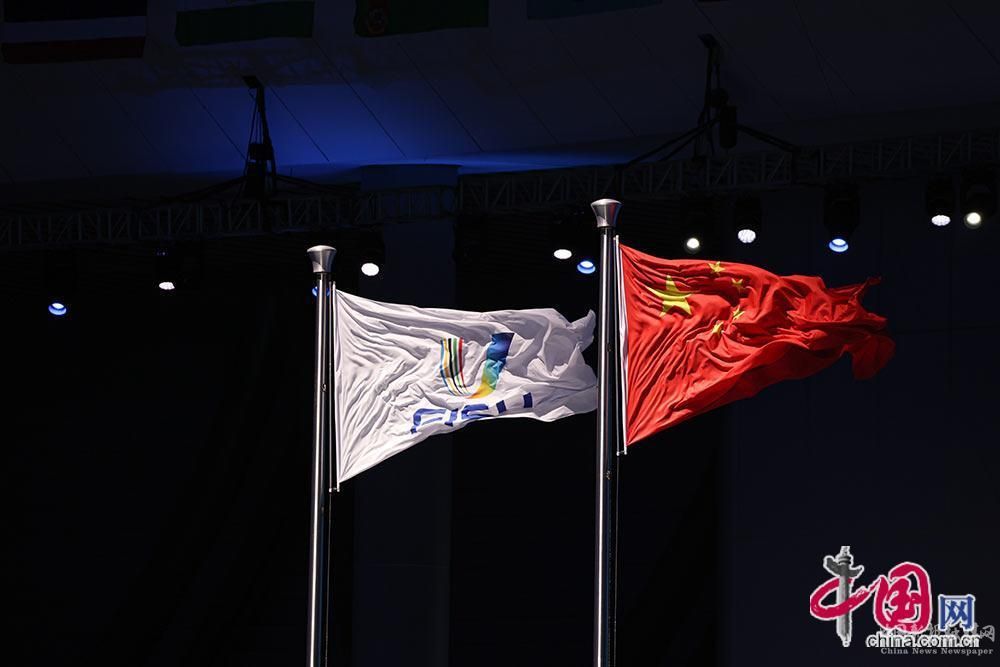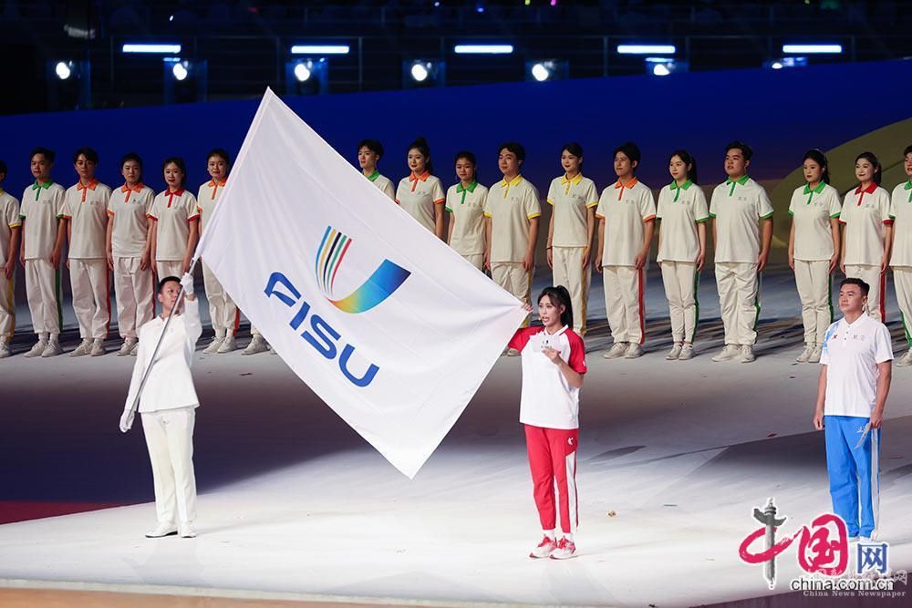 國際大學生體育聯(lián)合會會旗入場。中國網(wǎng) 倫曉璇攝影