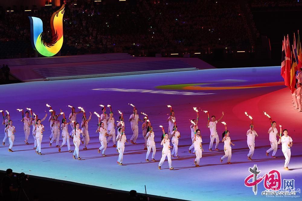 7月28日,第三十一屆世界大學生夏季運動會開幕式現(xiàn)場,大運會火炬入場。中國網(wǎng) 倫曉璇攝影