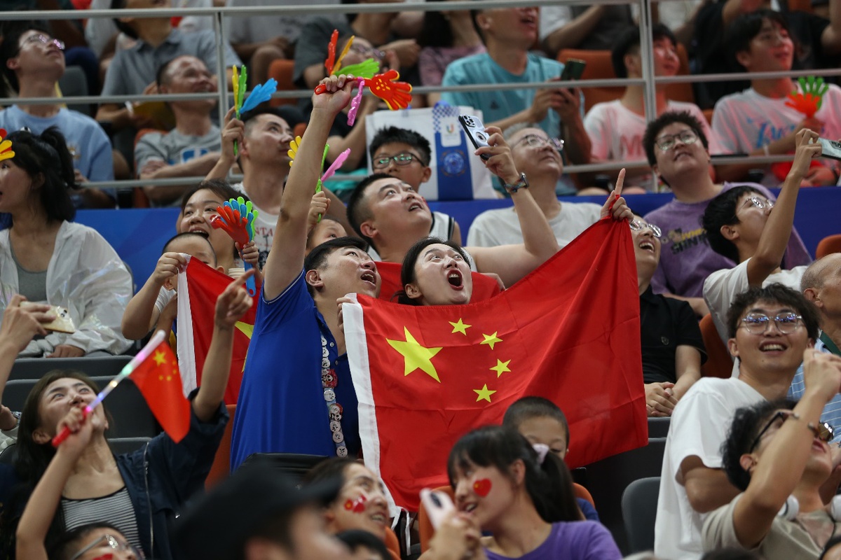 8月5日,觀眾在賽場(chǎng)觀賽。中國日?qǐng)?bào)記者 張威 攝