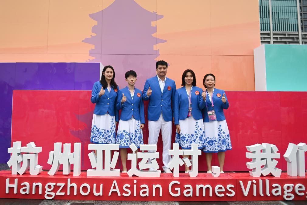 在中國體育代表團歡迎儀式上,亞運村村長李火林致歡迎辭,熱烈歡迎中國體育代表團入村。他表示亞運村將按照“以運動員為中心,以服務(wù)賽事為核心”的辦村宗旨,讓亞運村像家一樣安全、溫馨、舒適。李火林與國家體育總局副局長、中國體育代表團副團長周進強互贈紀念品。