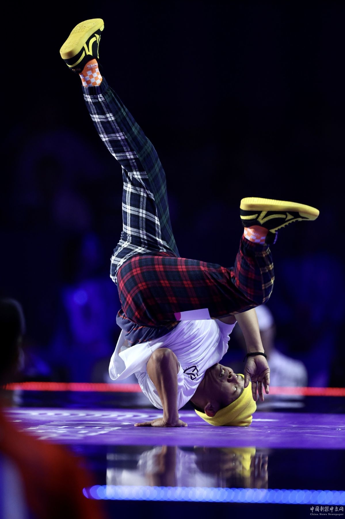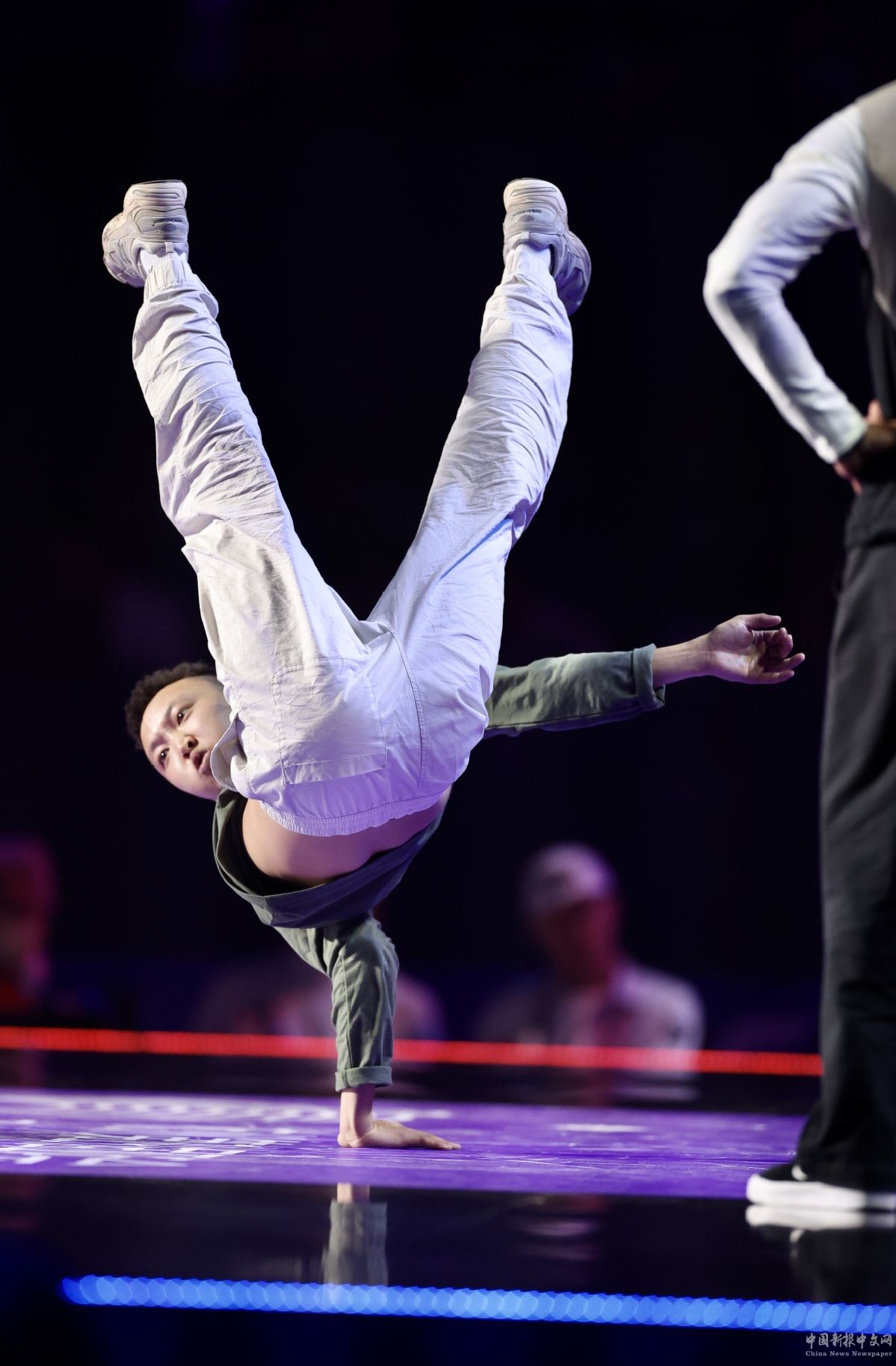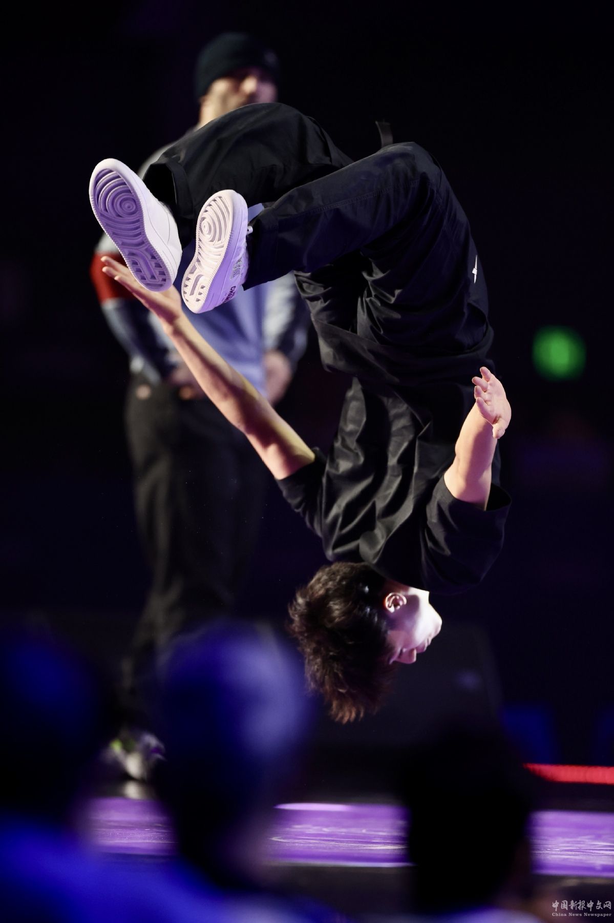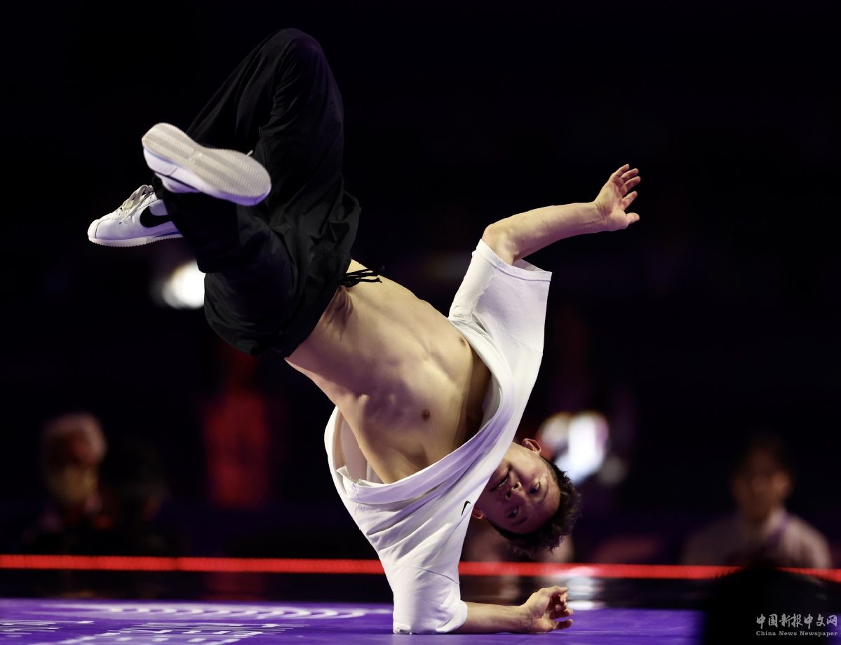 10月6日,選手在霹靂舞男子組個(gè)人資格賽比賽中。 中國(guó)日?qǐng)?bào)記者 魏曉昊 攝
