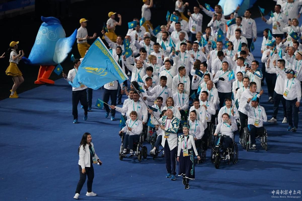 10月22日,哈薩克斯坦代表團(tuán)在開幕式上入場(chǎng)。中國(guó)日?qǐng)?bào)記者 高爾強(qiáng) 攝