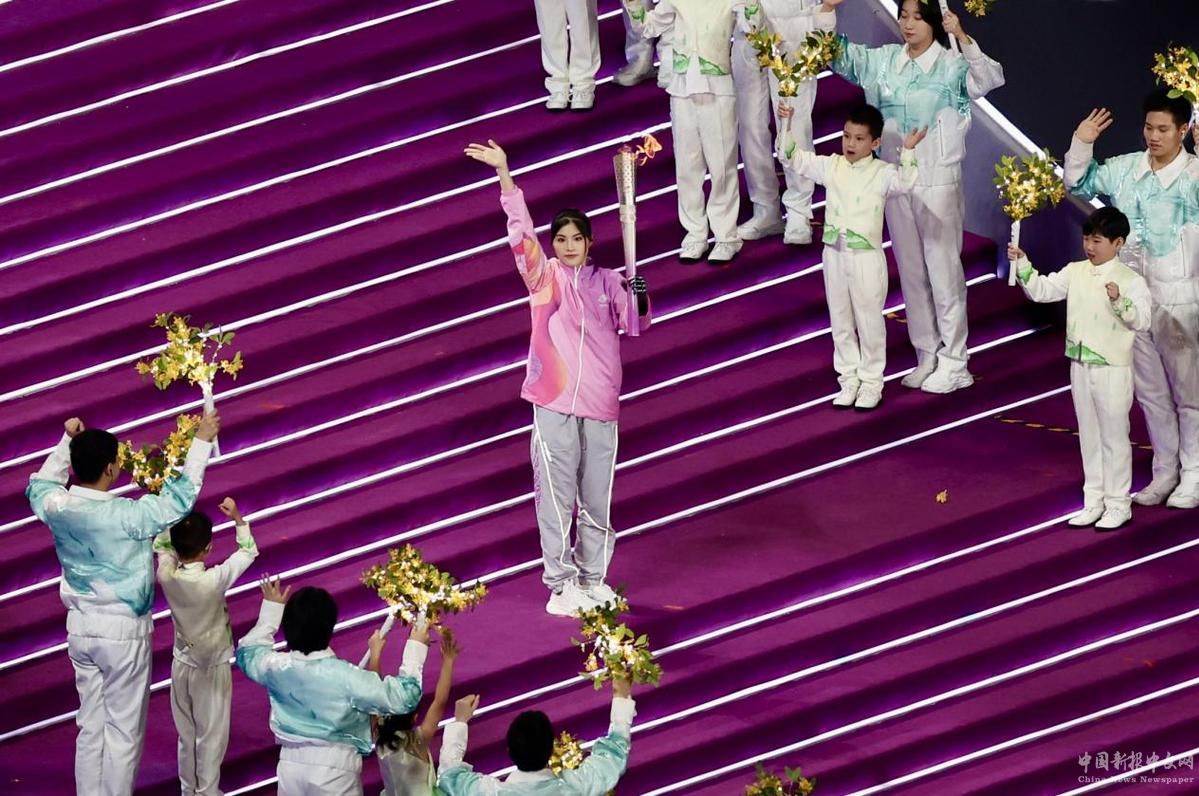 10月22日,最后一棒火炬手徐佳玲在開幕式上點(diǎn)燃主火炬。中國(guó)日?qǐng)?bào)記者 高爾強(qiáng) 攝