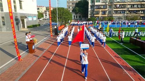 精彩紛呈的入場式后,副校長何江主持開幕式。升國旗、奏唱國歌,全體師生莊嚴肅立,那嘹亮的歌聲是對祖國最深情的熱愛。校長劉家彪為大會致開幕詞,劉校長勉勵大家各司其職,齊心協(xié)力辦好這次運動會,延續(xù)亞運精神,賽出十五中人的風采。接著,裁判員代表和運動員代表依次宣誓。開幕式最后,黨支部書記肖茂哲打響了運動會的第一槍,并響亮宣布:衡陽市十五中學第44屆田徑運動會開幕。