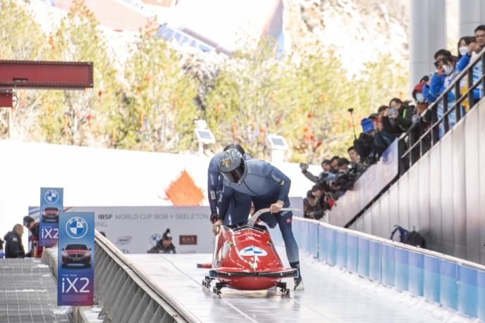 圖為2023-2024賽季國際雪車聯(lián)合會雪車和鋼架雪車世界杯延慶站比賽現(xiàn)場。圖片由延慶區(qū)提供