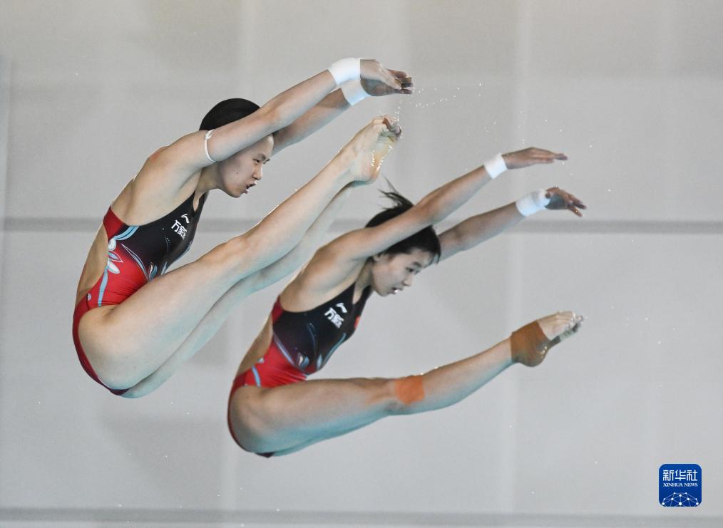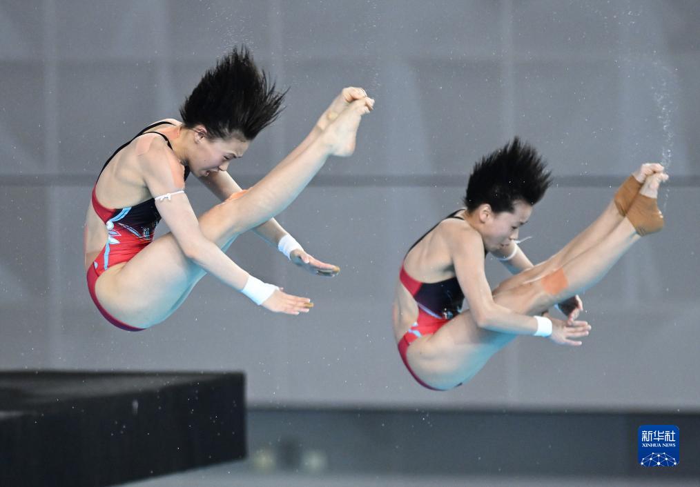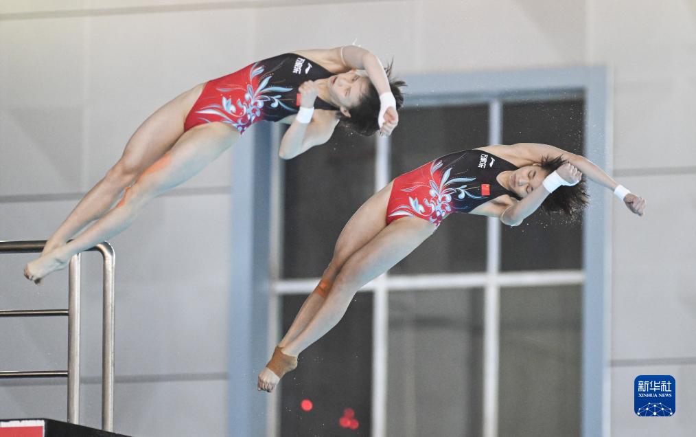 當(dāng)日,在武漢體育中心舉行的2023年全國跳水錦標賽暨巴黎奧運會、多哈世錦賽選拔賽女子雙人10米跳臺決賽中,全紅嬋(廣東海印隊)/陳芋汐(上海隊)以354.66分的成績獲得冠軍。
