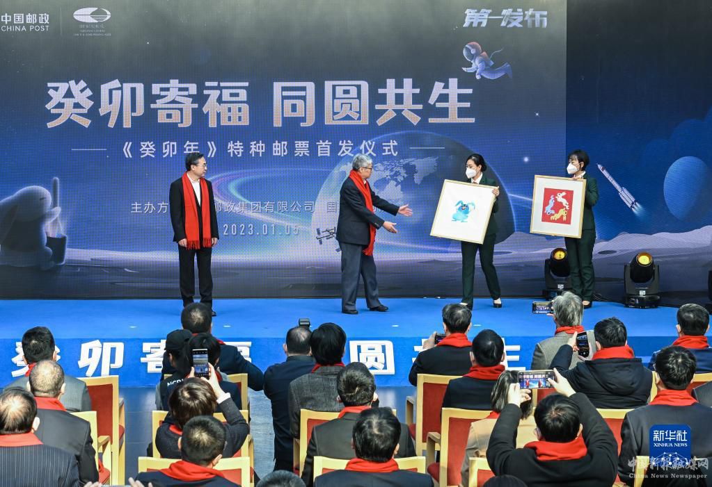 1月5日,由藝術(shù)家黃永玉繪制的郵票設(shè)計(jì)畫(huà)稿在《癸卯年》特種郵票首發(fā)儀式上亮相。