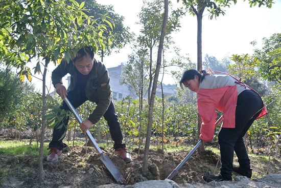 1月30日,湖南省隆回縣金石橋鎮(zhèn)大田村湘元綠香美彩苗圃種苗場(chǎng)負(fù)責(zé)人賀湘元與社員,在地里忙碌著為客商采挖金絲楠木和扎捆樹蔸,以便增強(qiáng)樹木成活率。 大田村60多歲的花卉苗木專業(yè)戶賀湘元,從2002年開始從事花卉苗木繁育,是從事花木繁育二十多年的“弄花人”。對(duì)花木品種繁育情有獨(dú)鐘,每年從外地引進(jìn)新品種進(jìn)行繁育試驗(yàn),至今他的苗圃基地繁育了五六十個(gè)珍稀名貴花木品種,形成了五彩繽紛的世界。經(jīng)過(guò)長(zhǎng)時(shí)間的實(shí)踐與探索,賀湘元繁育珍稀名貴花木積累了一定的經(jīng)驗(yàn),成了遠(yuǎn)近聞名的花木“土專家”。