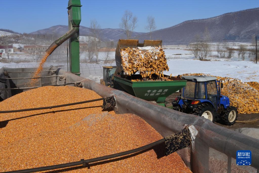 2月15日,在黑龍江省牡丹江市林口縣刁翎鎮(zhèn)三家子村,農(nóng)民利用設(shè)備將玉米脫粒,為春耕做準(zhǔn)備。
