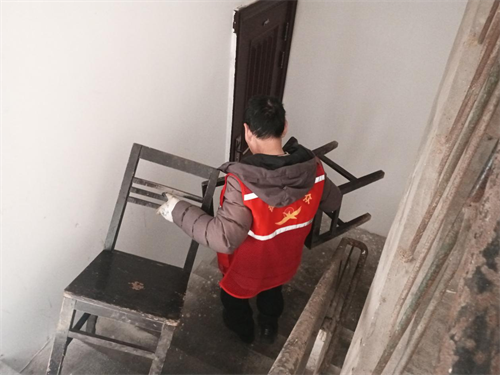 志愿者們幫助居民清理雜物,不漏一處衛(wèi)生死角。