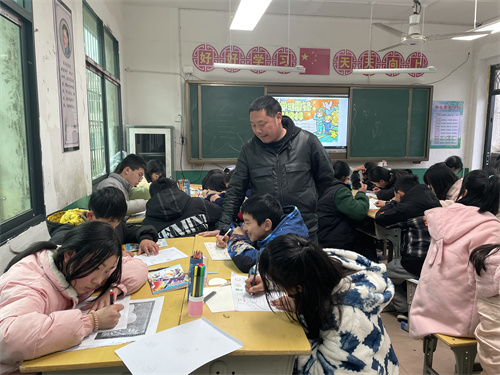 此次活動(dòng)不僅讓學(xué)生感受到繪畫的魅力、增強(qiáng)了自信心,同時(shí)提升了學(xué)生的文化素養(yǎng)。圖為該校校長(zhǎng)譚顯龍指導(dǎo)學(xué)生繪畫。(通訊員 袁利紅 劉玄英 胡富元 攝影報(bào)道)