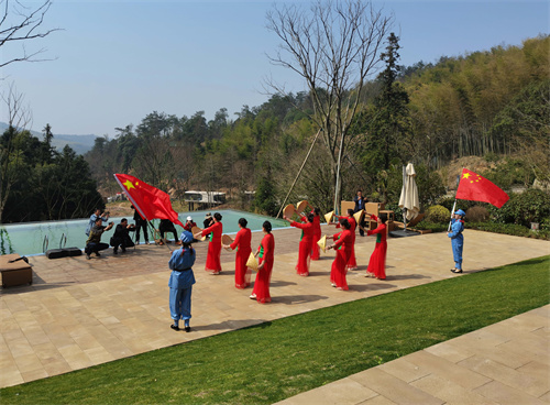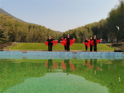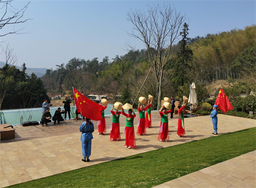 2023年3月9日,陽春三月,春光明媚,在安徽省合肥市廬江縣礬山鎮(zhèn)竹溪喬沖鄉(xiāng)野度假營地,游客和舞蹈達(dá)人正在展示舞姿、拍攝影像,共享美好春天。