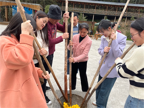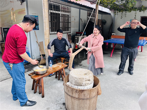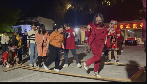 活動(dòng)中,大家共同學(xué)習(xí)畬族茶文化,進(jìn)行乒乓球大轉(zhuǎn)移、乒乓球比賽、羽毛球比賽、敲十人鼓等趣味運(yùn)動(dòng)項(xiàng)目,體檢畬族的抖糍粑、石磨豆腐,竹竿舞,舉行篝火晚會(huì)展示才藝,現(xiàn)場(chǎng)高潮迭起,歡聲笑語(yǔ)一片又一片響起。在這美好的節(jié)日里,大家釋放了工作壓力,增進(jìn)了友情。