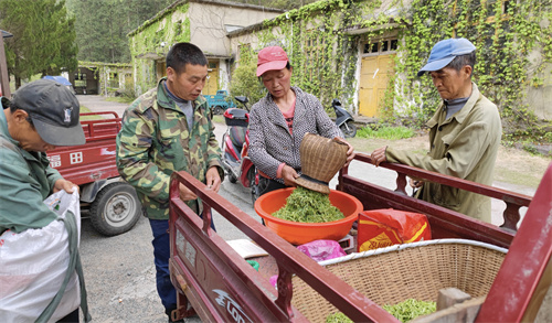 “你這是高山茶,每斤收購價比村邊的高10元。”4月12日,在休寧縣鶴城鄉(xiāng)新安源村六股尖山道入口處,高舍山茶廠的工作人員正在收購茶農(nóng)采購的鮮葉。茶農(nóng)張龍好當(dāng)天采摘單芽3.74斤,按收購價每斤150元算,當(dāng)天收入561元。