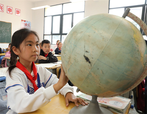 4月20日,在湖南省保靖縣毛溝小學(xué),老師利用地球儀讓學(xué)生認(rèn)識(shí)地球、了解地球的構(gòu)造等。在世界地球日來(lái)臨之際,該校通過(guò)播放保護(hù)地球、節(jié)約資源視頻,介紹節(jié)約用水、愛(ài)護(hù)綠地小常識(shí)等多種方式,教育學(xué)生從小養(yǎng)成熱愛(ài)地球、節(jié)約資源、愛(ài)護(hù)環(huán)境的好習(xí)慣,共同保護(hù)美好家園。(俞采華 陳亞平)