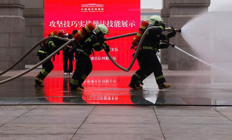 4月27日,國博安全綜合演練現(xiàn)場。中國日報記者 姜東 攝