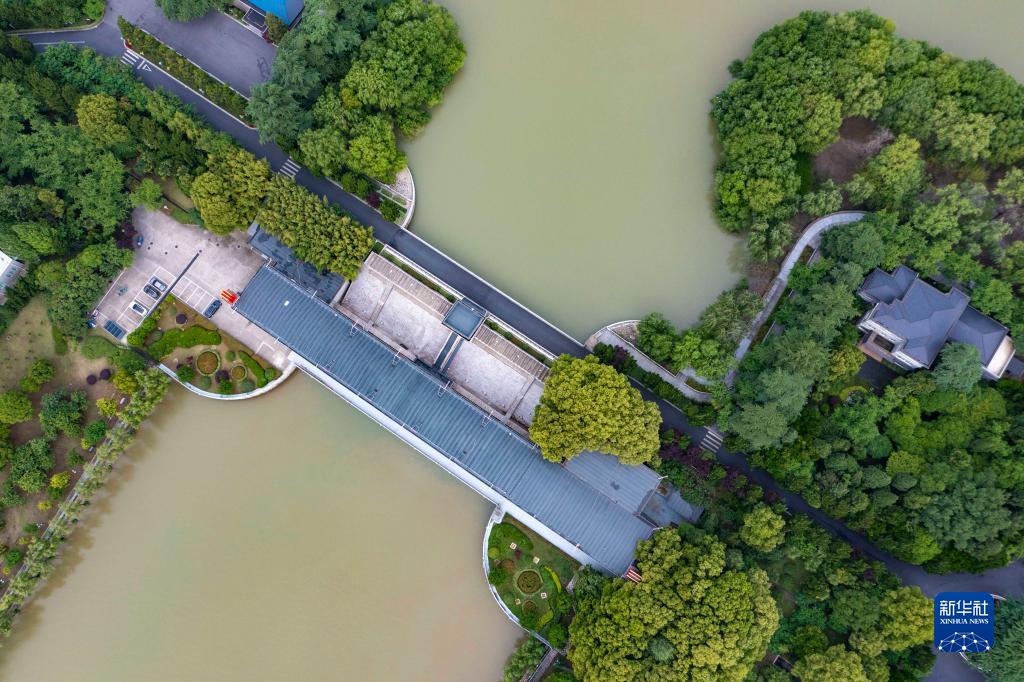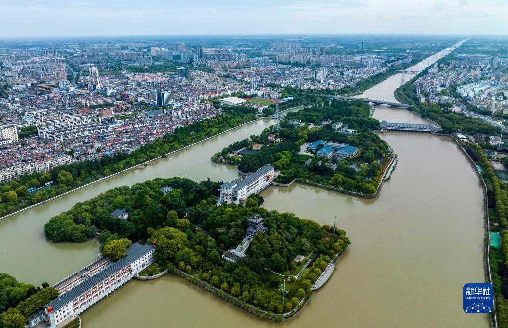 5月7日在江蘇省揚州市拍攝的江都水利樞紐(無人機全景照片)。新華社發(fā)(周社根 攝)