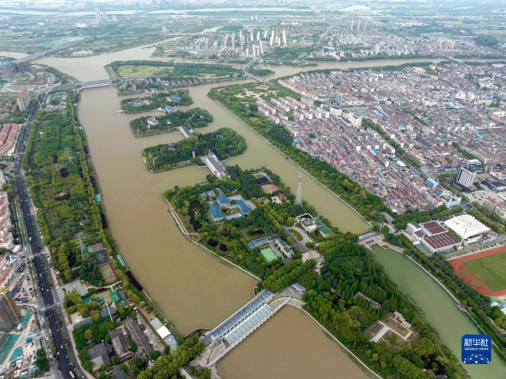 5月7日在江蘇省揚州市拍攝的江都水利樞紐(無人機照片)。新華社發(fā)(顧祥忠 攝)