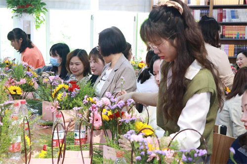 活動(dòng)在鮮花的芬芳中拉開(kāi)帷幕。溫暖的康乃馨、向上的向日葵、真摯永恒的勿忘我、生機(jī)勃勃的綠植……各類花材錯(cuò)落有致、鋪滿桌幾,芬芳四溢,爛漫滿屋?;顒?dòng)現(xiàn)場(chǎng)歡聲笑語(yǔ)不斷,節(jié)日氛圍和諧溫馨。