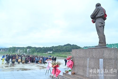 5月22日,是袁隆平逝世二周年紀念日。湖南省隆回縣羊古坳鎮(zhèn)雷峰村近百名群眾,在袁隆平銅像開展紀念活動。袁隆平院士自2009年在雷峰村創(chuàng)建超級雜交水稻高產(chǎn)攻關(guān)科研基地以來,曾多次創(chuàng)造了全國和世界高產(chǎn)紀錄,被群眾譽為“神農(nóng)”。(賀上升攝)