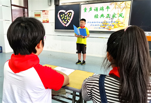 2023年6月19日,安徽省合肥市廬江縣萬山鎮(zhèn)明德小學(xué)組織孩子們開展“童聲頌端午,經(jīng)典正家風(fēng)”端午節(jié)主題演講活動(dòng),18名留守兒童儀態(tài)端莊,自然大方,大膽上臺(tái)誦讀,通過踴躍參賽讓中華民族優(yōu)秀的傳統(tǒng)文化常駐童心。(巢志斌 攝)