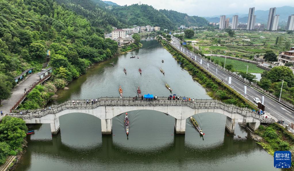 當(dāng)日,浙江省建德市乾潭鎮(zhèn)舉辦胥溪清涼季鄉(xiāng)村傳統(tǒng)龍舟賽,迎接端午節(jié)。近年來(lái),乾潭鎮(zhèn)充分挖掘自然山水的優(yōu)勢(shì),將體育旅游、生態(tài)旅游、鄉(xiāng)村度假有效結(jié)合,積極推進(jìn)鄉(xiāng)村旅游和鄉(xiāng)村振興。