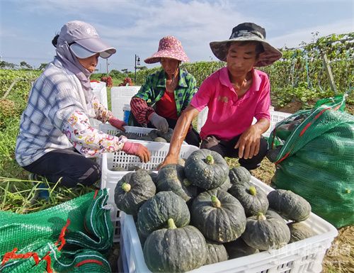 當?shù)胤N植能人胡常青引進日本惠禾新品種貝貝小南瓜,成立金禾貝貝小南瓜種植基地,林下套種240畝,以大豆、菜籽等原材料發(fā)酵成有機肥進行水肥一體化綠色生態(tài)栽種,畝產(chǎn)量達3000多公斤,畝產(chǎn)值超過5萬元。基地以“黨支部+公司+農(nóng)戶”的運用模式,帶動了當?shù)?0多位村民就近就業(yè),年發(fā)放薪酬達160萬元,有力地助推了鄉(xiāng)村振興。       (巢志斌  攝)