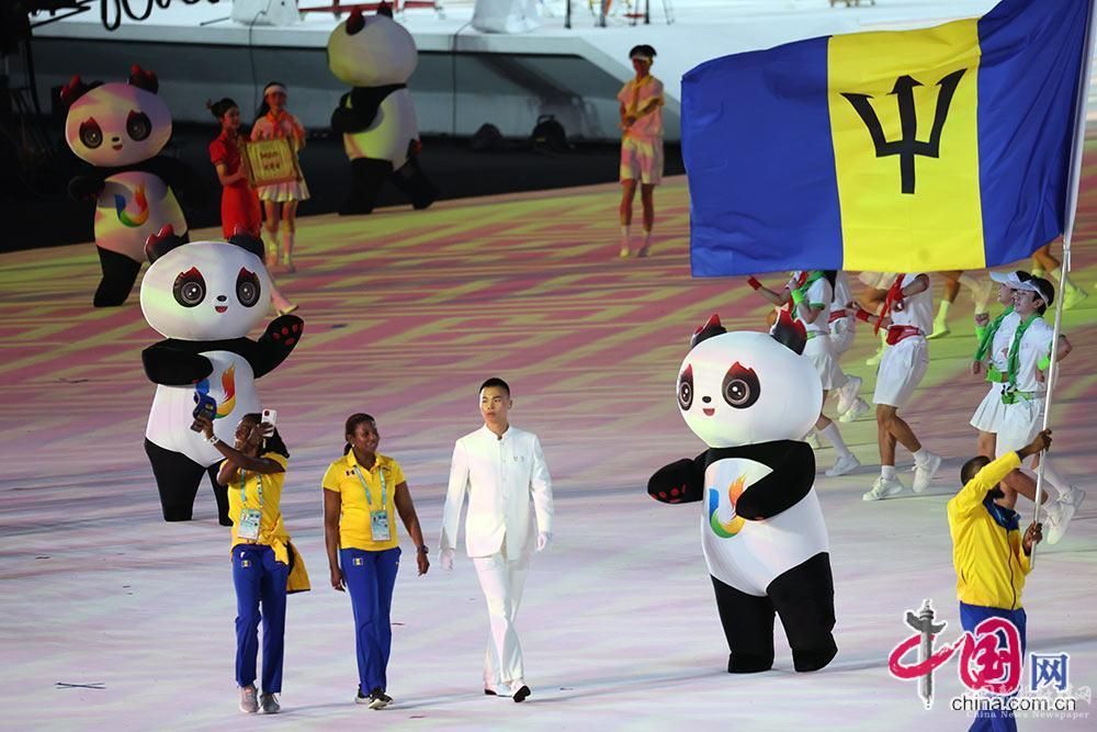 7月28日,大運(yùn)會(huì)吉祥物“蓉寶”在第三十一屆世界大學(xué)生夏季運(yùn)動(dòng)會(huì)開幕式現(xiàn)場。中國網(wǎng) 倫曉璇攝影
