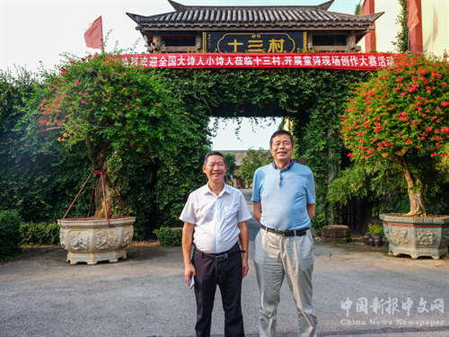 李國(guó)武在驕陽(yáng)下興致勃勃為大家導(dǎo)游、拍照。大小詩(shī)人們漫步生態(tài)型廠(chǎng)區(qū),參觀笑臉墻、“德”字碑、地下古醬窖、農(nóng)耕文化展示廳、非遺工坊、花草果園。一個(gè)個(gè)自然生態(tài)、人文景點(diǎn),展示著十三村生態(tài)保護(hù)和非遺文化、精神文明建設(shè)的累累碩果。