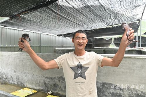 8月17日,湖南省隆回縣麻塘山鄉(xiāng)尖山村養(yǎng)殖戶劉東洋笑逐顏開在展示養(yǎng)殖成功的石蛙。今年,返鄉(xiāng)創(chuàng)業(yè)人員劉東洋從貴州引種學(xué)習(xí)石蛙養(yǎng)殖技術(shù),利用當(dāng)?shù)貧夂蚝退驘o污染的資源優(yōu)勢,創(chuàng)辦石蛙養(yǎng)殖場,人工養(yǎng)殖石蛙喜獲成功。(賀上升攝)
