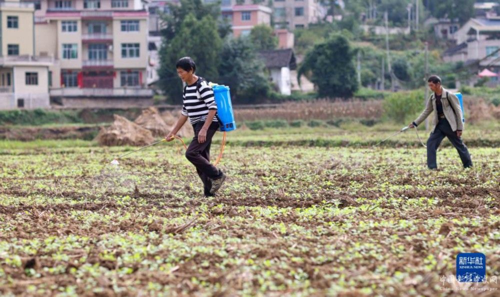 10月9日,在貴州省銅仁市玉屏侗族自治縣平溪街道楊柳村,農(nóng)民在油菜育苗基地給油菜苗殺蟲。金秋時節(jié),各地農(nóng)民搶抓農(nóng)時,有序開展秋收、秋種、秋管等農(nóng)事活動,田間地頭呈現(xiàn)一派繁忙景象。新華社發(fā)(胡攀學(xué) 攝)