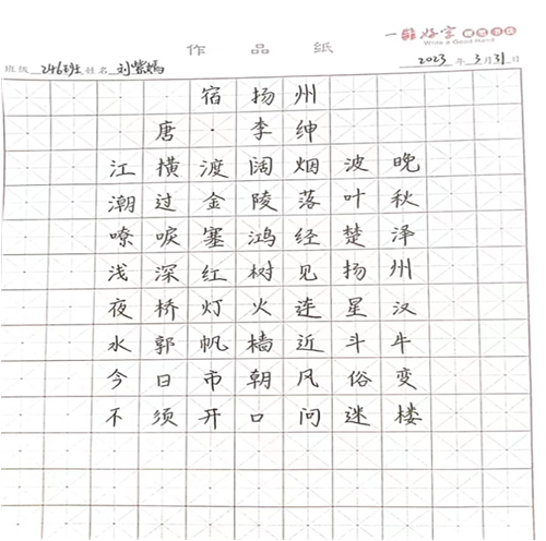 書法作為一門藝術(shù),不是一朝一夕之功能夠練就的,需要花費大量的精力和心血。我手寫我心,只有培養(yǎng)了濃厚的興趣,我們的孩子才能寫出一手漂亮的中國字,在學(xué)習(xí)書法文化的道路上越走越遠。