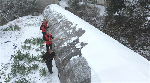 2023年12月18日,安徽省合肥市廬江縣食用菌協(xié)會組織黨員志愿者來到該縣廬城鎮(zhèn)塔山社區(qū),為殘疾村民、食用菌種植戶馬發(fā)應(yīng)的蘑菇大棚清除棚面積雪,以免雪厚壓損大棚。(巢志斌 攝)
