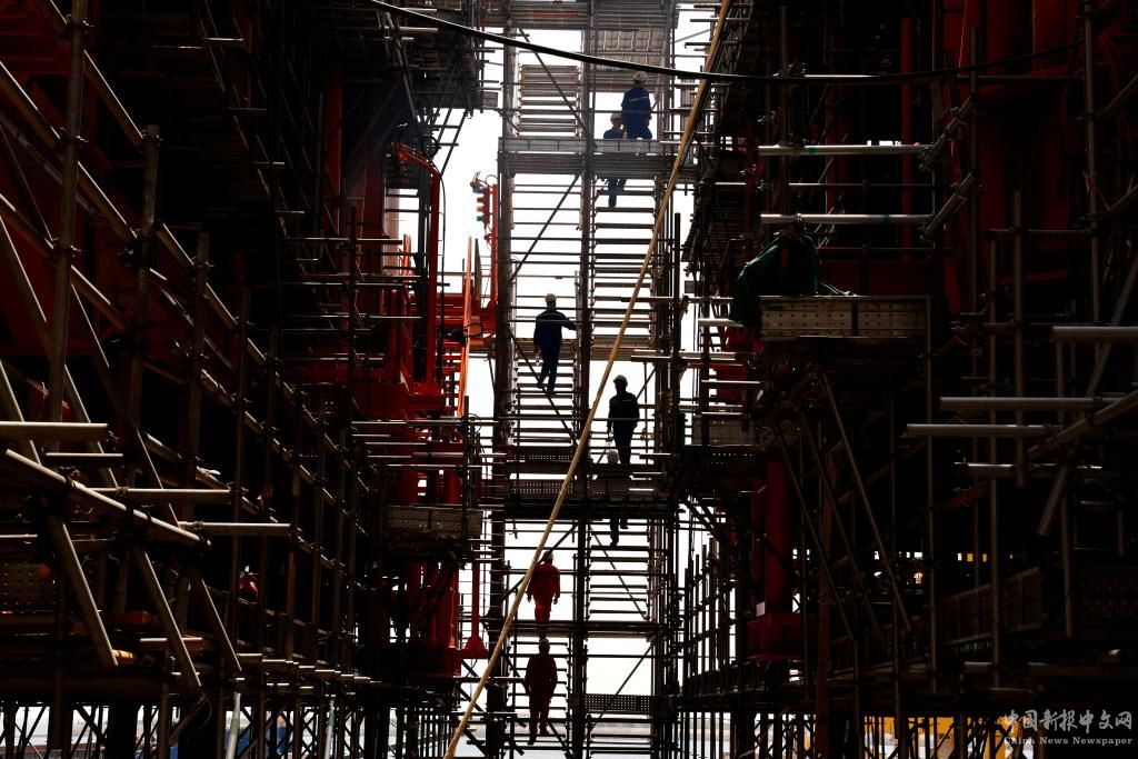 7月6日,工人穿梭在在海油工程天津智能化制造基地建造現(xiàn)場。
