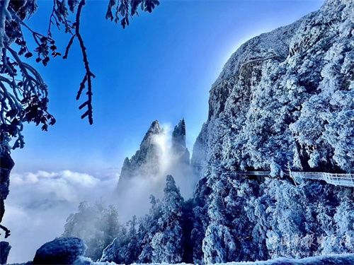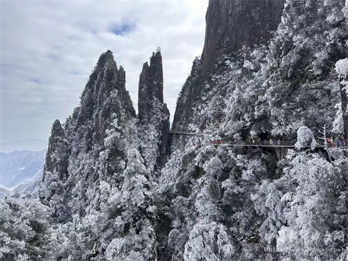 “霧凇花開(kāi)樹(shù)樹(shù)同,玉樹(shù)瓊枝美如畫(huà)”。近日受冷空氣影響,湖南莽山五指峰風(fēng)景區(qū)氣溫下降明顯,迎來(lái)霧凇、云海雙重奇景。入眼之處,銀裝素裹,美不勝收!莽山五指峰霧凇作為風(fēng)景區(qū)的冬季寶藏特色景觀,吸引了不少游客來(lái)山賞景。12月23日單日客流達(dá)近萬(wàn)人次。(記者 李志德)