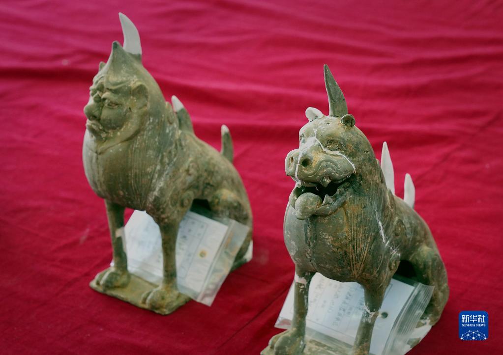 這是洛陽(yáng)孟津朱倉(cāng)北朝墓內(nèi)出土的陶鎮(zhèn)墓獸(3月15日攝)。