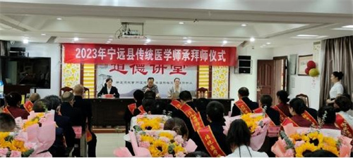 守正創(chuàng)新,薪火相傳。為傳承和發(fā)展中醫(yī)藥事業(yè),培養(yǎng)縣域內(nèi)中醫(yī)藥專業(yè)人才,2023年5月16日下午,寧遠(yuǎn)縣衛(wèi)健局在縣中醫(yī)醫(yī)院舉行傳統(tǒng)醫(yī)學(xué)師承拜師儀式,縣衛(wèi)健局、人民醫(yī)院、中醫(yī)醫(yī)院相關(guān)負(fù)責(zé)人及23名中醫(yī)指導(dǎo)老師、40名中醫(yī)學(xué)術(shù)繼承人參加儀式。