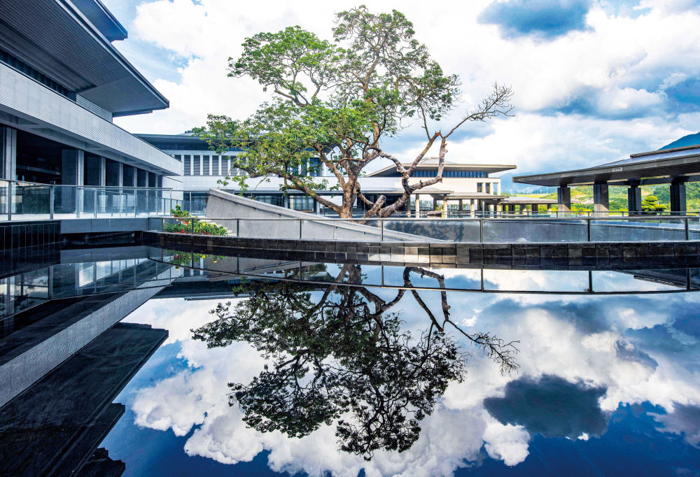 走進(jìn)中國(guó)國(guó)家版本館中央總館,掩映在山水園林中的文瀚閣典雅莊嚴(yán),池畔古亭匾額點(diǎn)以“匯流澄鑒”四字,寓意“匯集知識(shí)之源,洞悉古今之理”。