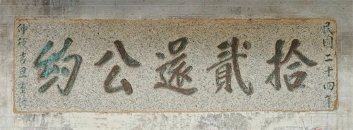 ▲書刻于“民國”二十四年的“十二環(huán)(還)公約”石匾。