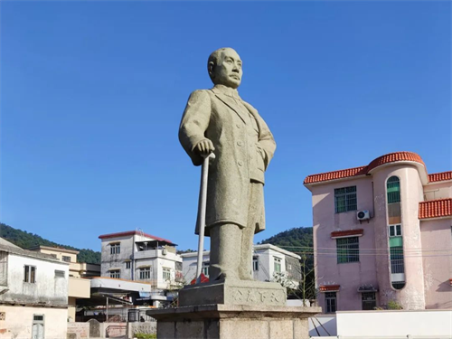 ▲神溪村湖心公園,佇立著一座由香港同胞陳偉夫捐建的孫中山雕像。