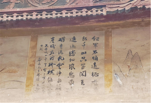 ▲宥南村僑房壁畫中的《七律·長征》詩句。