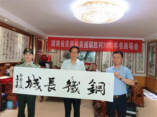 為紀(jì)念中國人民志愿軍抗美援朝勝利70周年,回顧歷史,緬懷先烈,6月16日,由中國戰(zhàn)略與管理研究會志愿軍研究會主辦,香港金六福珠寶首飾有限公司承辦,湖南星艾康生物科技有限公司、岳陽湘商傳媒有限公司、湖南金竹種養(yǎng)專業(yè)合作社協(xié)辦的湖南省慶祝抗美援朝勝利70周年書畫筆會在長沙舉行。