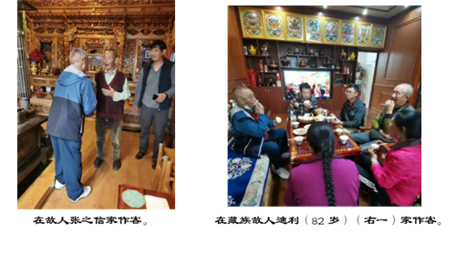 我夫婦倆到了香格里拉(迪慶州州府)的第二天,打嘀嘀車去農(nóng)業(yè)農(nóng)村局查找故人的姓名及地址,終于找到了四十六年前的老同事、老朋友。他們分別是迪利(藏族)原牧工,趕馬車的;張之信(納西族)原牧馬的,轉(zhuǎn)業(yè)軍人,后檢察院干部;楊蓮花(白族)大理人,種菜,張之信愛人;阿三妹(94歲)牧場放羊工人。