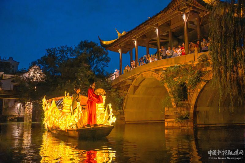 今年3月,歷時9年保護開發(fā)的濮院時尚古鎮(zhèn)正式揭開了神秘面紗。"濮院"一名的由來,緣起于濮鳳的六世孫濮斗南,昔日扶持宋理宗有功,被升為吏部侍郎,得賜宅邸于此。景區(qū)對"濮侍郎"這一歷史人物進行深度挖掘,以"侍郎回鄉(xiāng)"為故事主線,于7月15日起開展沉浸式演繹活動。演繹集游船巡游、互動表演、想象性與戲劇性于一體,游客可以在景區(qū)的百丈連廊碼頭至濮侍郎碼頭,與"濮侍郎"驚喜相逢,直接"對話"宋韻歷史,綿延近千年的詩情畫意。