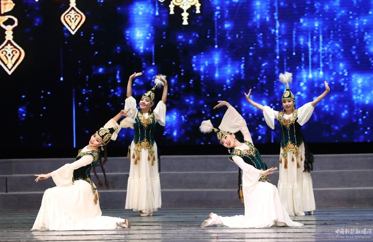 7月22日拍攝的哈薩克斯坦歌舞晚會《富饒的家鄉(xiāng)》。中國日報記者 鄒紅 攝