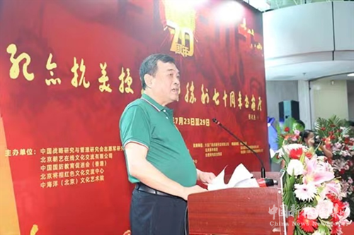 中國(guó)新報(bào)訊(記者 陳海波、通訊員 許三星 陳學(xué)江)傳承紅色基因 , 謳歌英雄精神。在抗美援朝戰(zhàn)爭(zhēng)勝利70周年紀(jì)念日即將來(lái)臨之際,7月23日上午,《紀(jì)念抗美援朝戰(zhàn)爭(zhēng)勝利70周年書(shū)畫(huà)展》在北京中關(guān)村泰鵬大廈正式開(kāi)幕。來(lái)自社會(huì)各界的代表200余人以及朝鮮駐華使館參贊參觀了展覽。